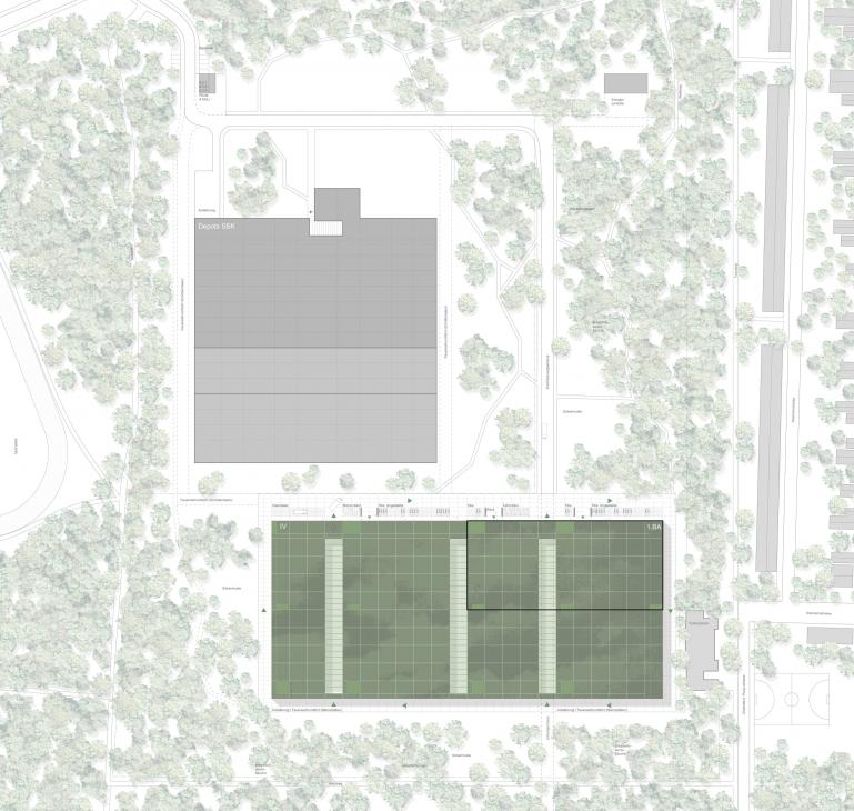 Die Reduktion auf das Minimum ist das Leitthema des Entwurfes. Erstens unter dem Gesichtspunkt eines sparsamen Umgangs mit den Ressourcen (Landschaft, Energie, Raum,...) und zweitens im Sinne einer Ästhetik, die das Thema des Einfügens in einen Landschaftsraum, in diesem Fall den Berliner Stadtwald, auf die Spitze treibt.