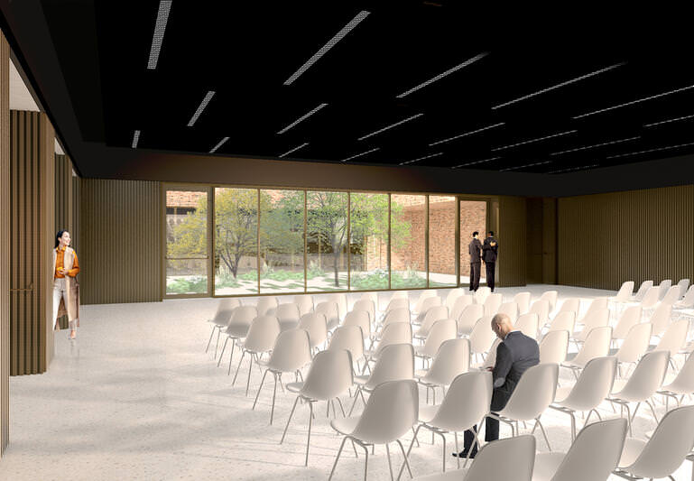 Situation und Programm gründen auf einem hohen Maß an Heterogenität und Komplexität. Leitgedanke des Entwurfs ist, die Situation durch eine weitgehende Homogenisierung von Bestandsgebäuden und Ergänzungen zu beruhigen. Die Bestandsgebäude werden auf die reine Konstruktion rückgebaut. An der kleinen Kurstraße werden zudem die Gebäudevorsprünge an der Ecke sowie im Erdgeschoss entfernt. Somit werden die beiden Baukörper straßenseitig im Sinne einer homogenen Randbebauung vereinfacht. Diese Maßnahmen dienen alle der Umsetzung des Leitgedankens, den Rand zu stärken und die Mitte offen zu halten. So entsteht eine relativ einfache Gesamtfigur, die eine gute Orientierung ermöglicht und optimale Voraussetzungen für die natürliche Belichtung der nach Innen orientierten Nutzflächen bietet.