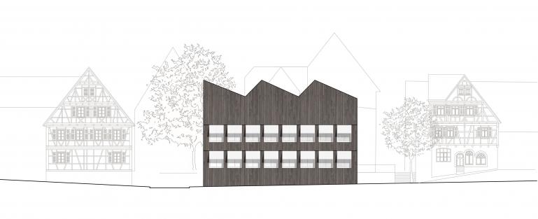 Der Ergänzungsbau ist präzise und maßstäblich in den Stadtgrundriss gesetzt, aber schafft in seiner reduzierten Ausbildung in der vielgestaltigen historischen Bebauung an dem Ort ein komplementäres Erscheinungsbild."