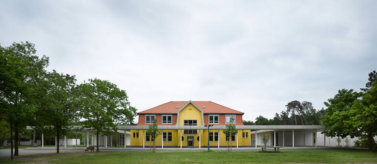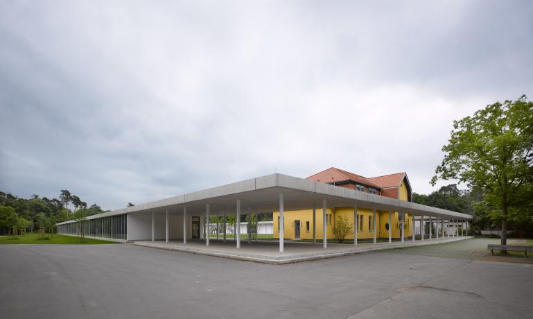 Die Eugen-Neter-Schule, eine Schule für geistig- und teilweise körperbehinderte Kinder, benötigte aufgrund der schlechten Bausubstanz neue Unterrichtsräume. In einem Waldgrundstück am Rande Mannheims ist hierfür ein Neubau entstehen, der die beiden historischen Kopfbauten mit Verwaltung und Mensa integriert.