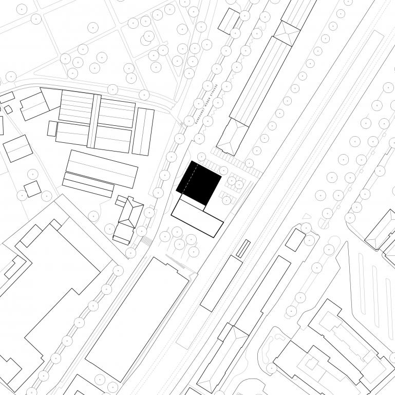 Die Schöller Firmengruppe beabsichtigt den Bau eines Hotels in zentraler Lage neben dem Reutlinger Hauptbahnhof. In Abstimmung mit der Stadt soll des Weiteren ein Mobilitätszentrum mit Radturm und Fahrradabstellplätzen vor dem ebenfalls neu zu erstellenden städtischen Platz westlich des Bahnhofs entstehen. Durch die Zusammenfassung der beiden Nutzungseinheiten Hotel und Mobilitätszentrum zu einem Baukörper kann ein großzügiger, städtischer Platz mit hohem Aufenthaltswert freigehalten werden. Beide Nutzungen stellen städtebauliche Akzente durch Hochpunkte her, die über einen Sockel miteinander verbunden sind. Dieser Sockel macht sich die topographischen Gegebenheiten zu Eigen und ermöglicht so eine sinnvolle und flächeneffiziente Aufteilung der Zugänge. Im Erdgeschoss des Hotels befindet sich der Empfang mit Foyer, sowie ein großer Frühstücks- und Loungebereich mit Bar und angeschlossener Kaltküche. Verwaltung und Service sind im rückwärtigen Bereich untergebracht. In den 7 Obergeschossen befinden sich die Hotelzimmer mit 20 Doppelzimmern je Geschoss.