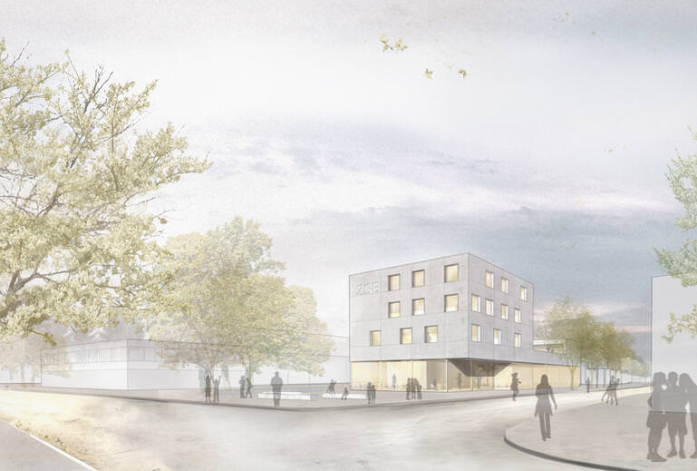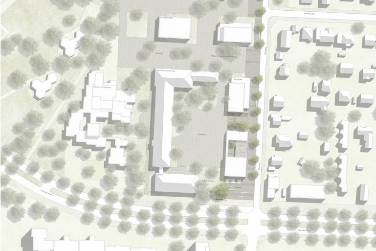 Der Entwurf für das „Zentrum für Sprache und Bewegung“ bedient sich spielerisch aus dem Repertoire der klassischen Moderne, indem Themen wie: der freie Grundriss, die Dachterrasse, fließende Übergänge von Innen und Außen, vorgefertigte Bauelemente etc. pp. aufgenommen werden. Aus städtebaulicher Sicht wird allerdings die Gegenposition vertreten: die Ausbildung klar begrenzter Stadträume wird als grundlegende Voraussetzung für die Qualität eines Quartiers gesehen.