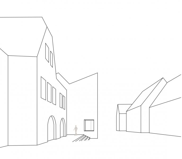 Der Ergänzungsbau ist präzise und maßstäblich in den Stadtgrundriss gesetzt, aber schafft in seiner reduzierten Ausbildung in der vielgestaltigen historischen Bebauung an dem Ort ein komplementäres Erscheinungsbild."