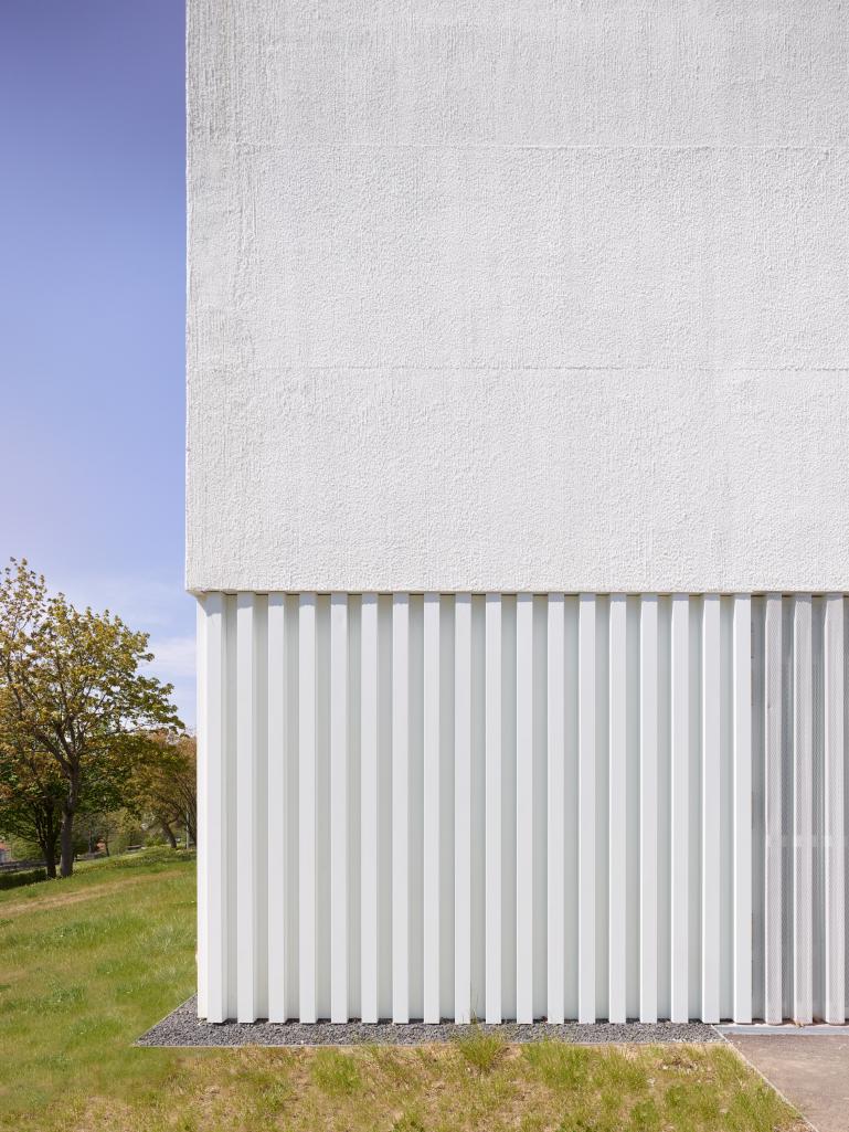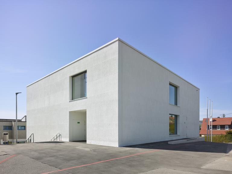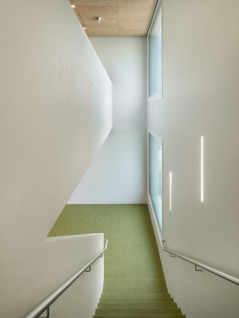 Das Klassenzimmergebäude kann kompakter gefasst werden. Der dreigeschossige, im Grundriss quadratische Baukörper, fügt sich gut in die Höhen der umliegenden Gebäude ein. Zusätzlich kommt er auf der Westseite der Adressbildung an der Nussdorfer Straße zugute, an der die Schule aktuell kaum präsent ist.