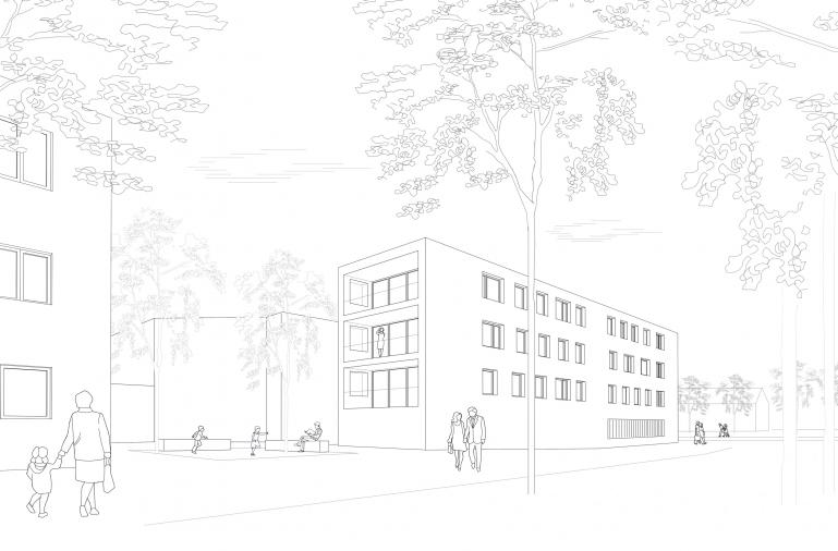 Die Neubauten werden im Sinne des städtebaulichen Konzepts in einer einheitlichen Sprache und Materialität entwickelt. Die Höhenentwicklung ist differenziert 2-3-geschossig wobei die Ecksituationen durchgehend 3-geschossig ausgebildet werden.
