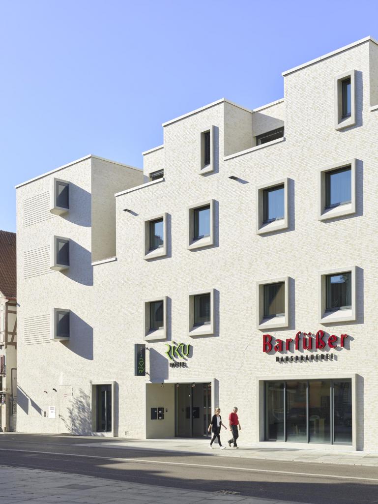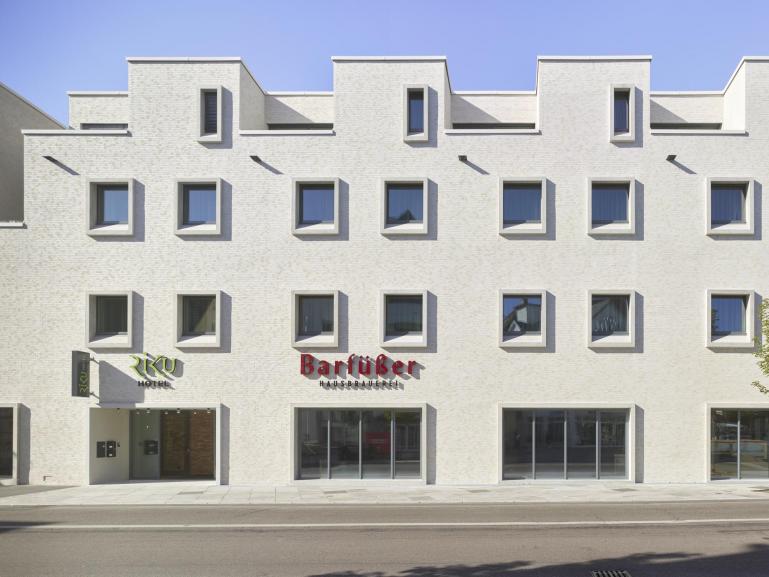 Gastronomie und Hotel teilen sich im Erdgeschoss einen gemeinsamen Eingang in der Geislinger Straße, wodurch eine optimale Symbiose der beiden Nutzungen entsteht. Der Gastronomie sind ebenerdig die Nutzflächen wie Küche und Lager, sowie eine hausinterne Brauerei zugeordnet, ebenso stehen Freiflächen in der Unteren Marktstraße für Außenbestuhlung zur Verfügung.